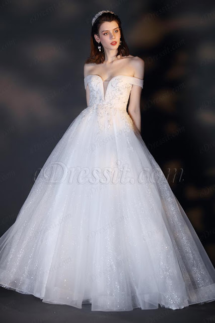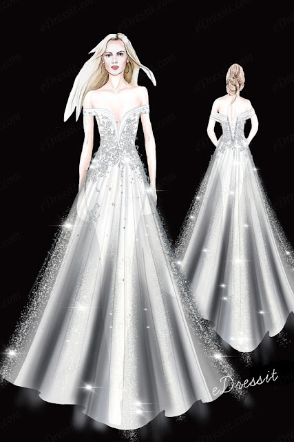 Off the shoulder wedding dress is one kind of excellent wedding dress that can show women's slender shoulders and beautiful bones. Details can be added to be different and fashionable.