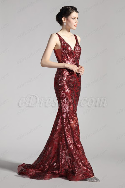 eDressit's new sparkling burgundy gown is a spectacular evening choice. Optical wizard sequins on an effortless silhouette make this dress utterly refined. Featuring a Deep V-Cut bodice and the mermaid skirt, making it a real winner when looking for something that's chic and sophisticated.The side sheer design with the open V Back adds more charming on the Dress.